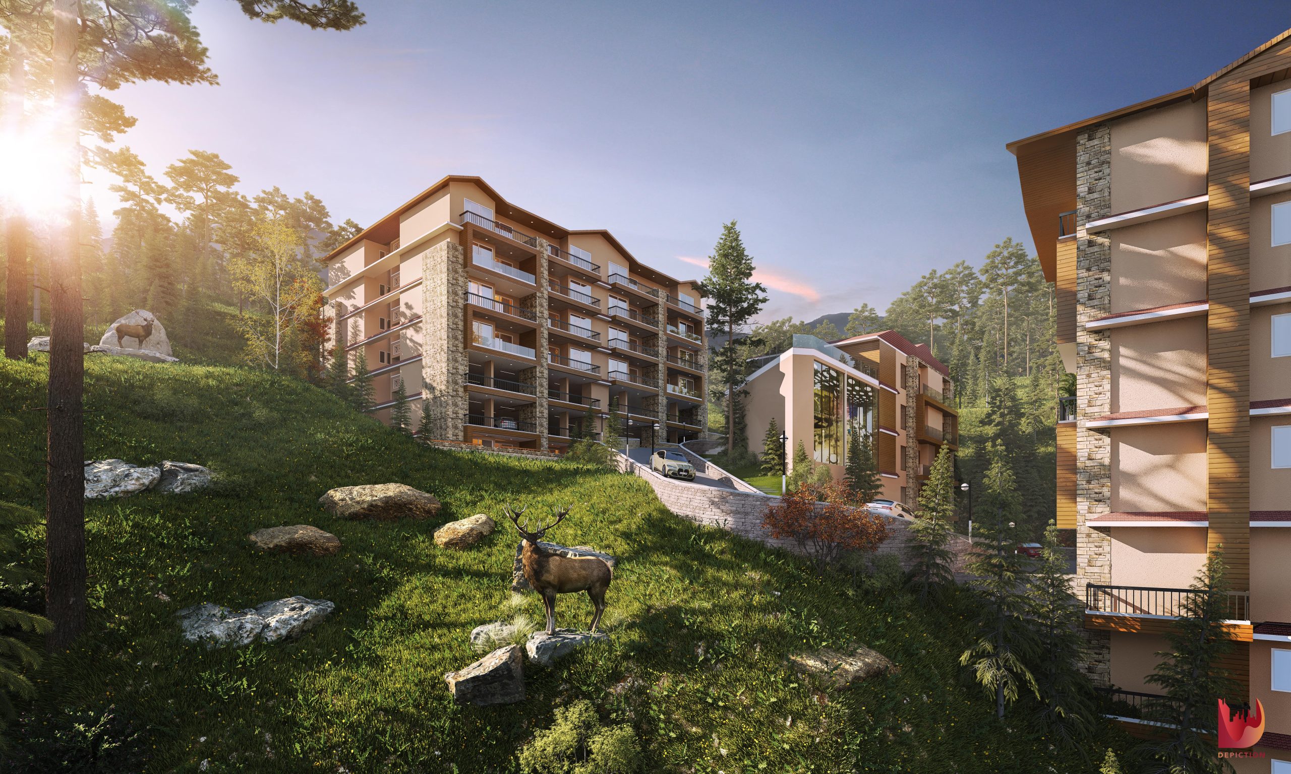 Immerse yourself in a harmonious union of modern luxury and lush greenery, where sustainability, innovation, and natural beauty converge to create an eco-friendly haven.